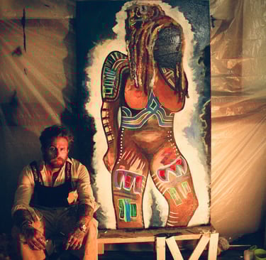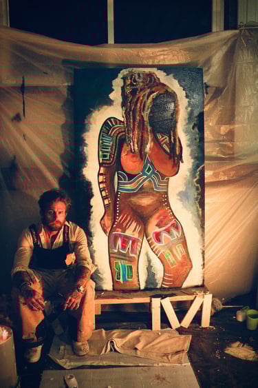 In pandemic fashion (sold) 35'' x 67'' mixed media on canvas